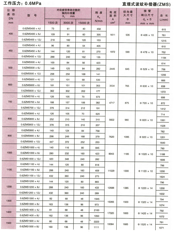 直埋式波紋補償器(ZMS型)參數(shù)2
