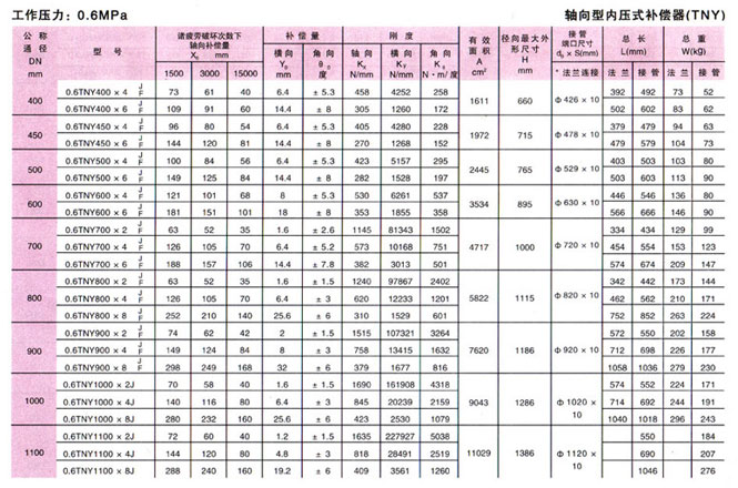 軸向型內(nèi)壓式波紋補償器(TNY)參數(shù)6
