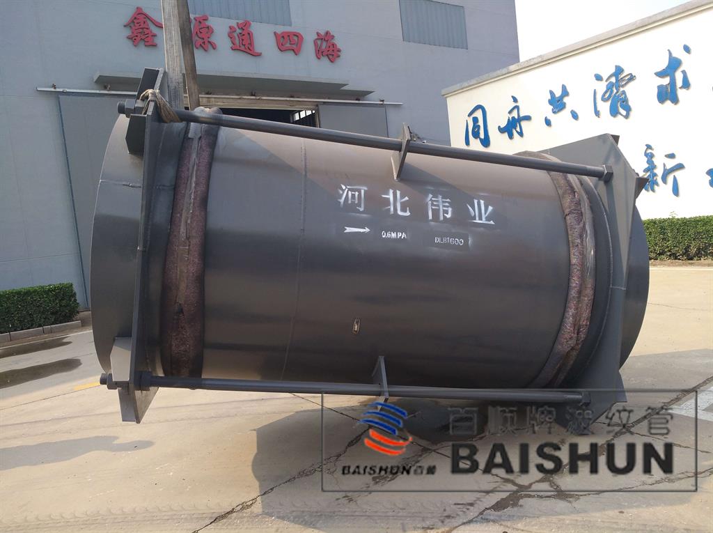 大拉桿橫向波紋管補(bǔ)償器,是一種用來(lái)補(bǔ)償彎曲管道的橫向位移。大拉桿波紋管補(bǔ)償器是由兩個(gè)相同的波紋管及端管、端板和拉桿組成的撓性部件,通過(guò)波紋管補(bǔ)償器的角偏轉(zhuǎn)可吸收管道單平面或多平面的橫向位移。4根長(zhǎng)拉桿能承受內(nèi)壓推力和其它附加外力的作用,拉桿兩端的螺栓出廠前已調(diào)好間距,安裝前大拉桿是松動(dòng)的,在大欄桿波紋管補(bǔ)償器工作變形后,大拉桿可以起到限制變形量保護(hù)波紋管補(bǔ)償器的作用。
