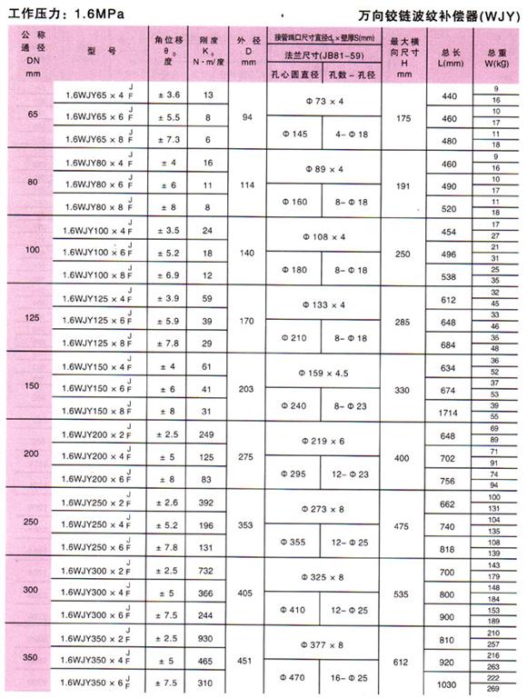 萬向鉸鏈波紋補償器(WJY)參數(shù)6