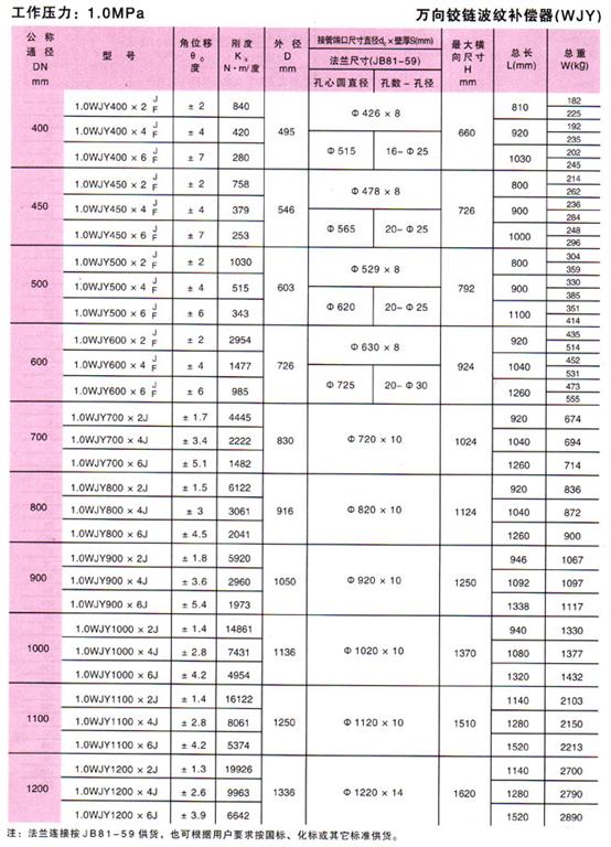 萬向鉸鏈波紋補(bǔ)償器(WJY)參數(shù)5