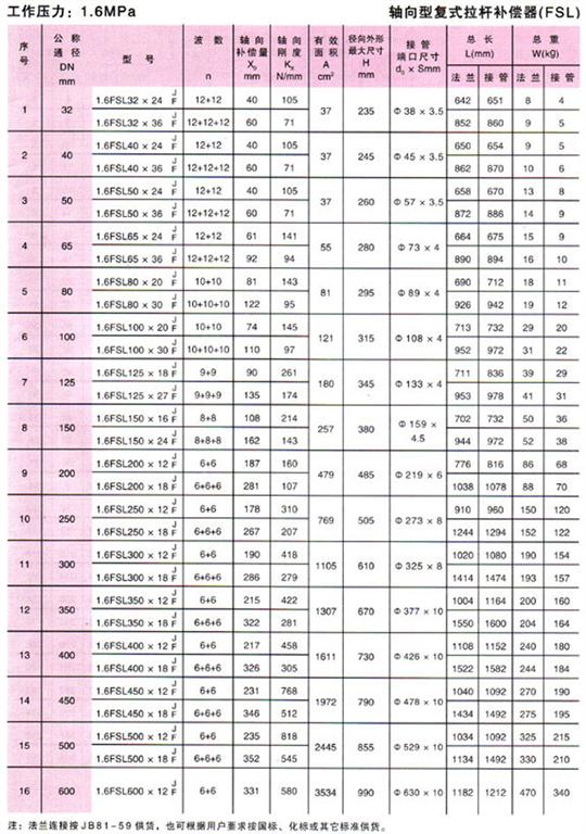 軸向型復式拉桿波紋補償器(FSL型)參數(shù)3